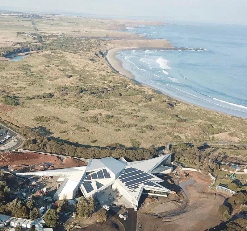 新游客中心屋顶光伏发电系统由当地公司 Gippsland Solar承建。公司 CEO Andy McCarthy介绍说,游客中心地处滨海高地,常有强风和大量盐雾,这给项目的施工带来很大挑战。此外,为了避免破坏建筑的美学设计,游客中心可用于安装光伏发电系统的屋顶面积有限,需要系统设计公司找到更高效的解决方案。天合光能高效太阳能组件具备高兼容、高可靠和高效率的特性,可以帮助发电系统在复杂的自然环境中正常运行,并保持较高的发电量,自然也成为了该项目的最佳选择。