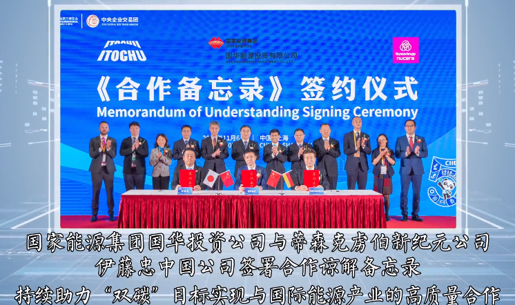 11月6日,在第五届中国国际进口博览会期间,国家能源集团与蒂森克虏伯签署合作谅解备忘录,国家能源集团国华投资公司与蒂森克虏伯新纪元、伊藤忠中国公司签署合作谅解备忘录。3家世界500强企业联手,聚焦清洁能源领域,共同探索并实践能源和工业经济可行的绿色发展路径,汇聚创新活力,加强交流协作,深化务实合作,积极探索能源发展新范式,持续助力“双碳”目标实现与国际能源产业的高质量合作。
