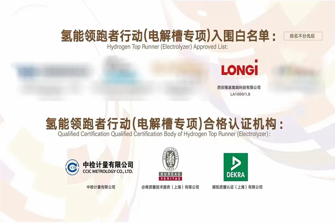位居前列!隆基氢能入围氢能领跑者行动白名单