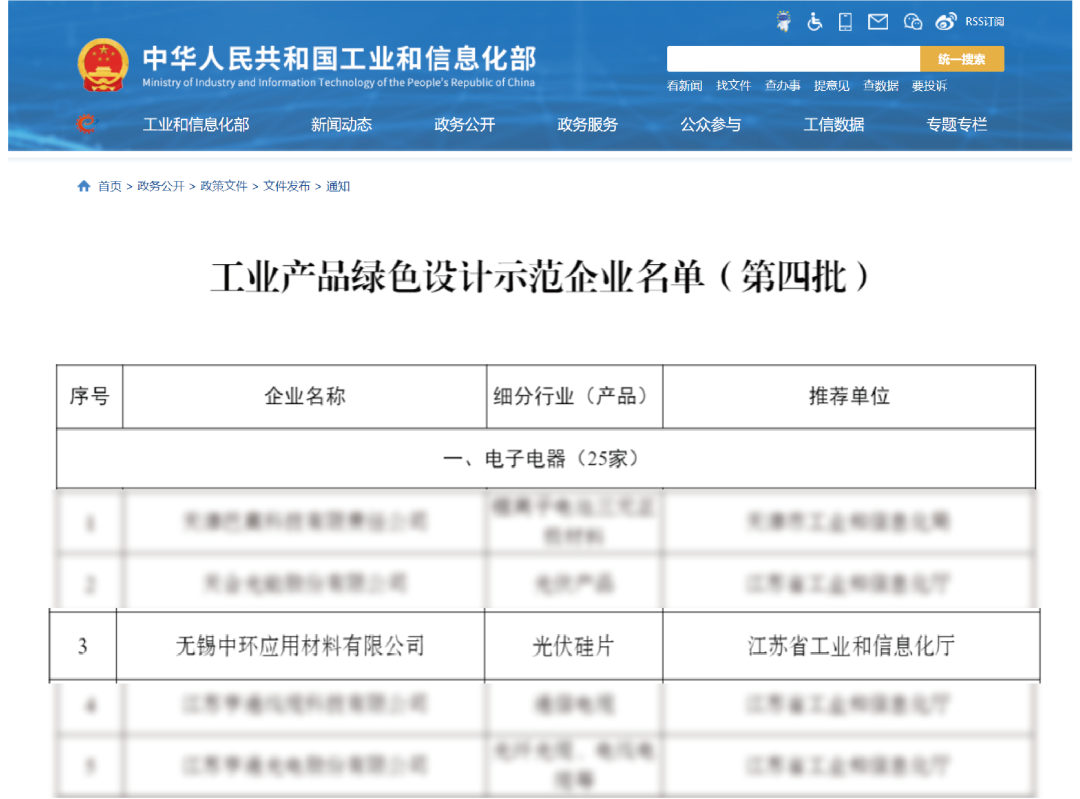 国家级绿色认证!TCL中环旗下DW切片工厂中环应材成功入选工业产品绿色设计示范企业名单(第四批)