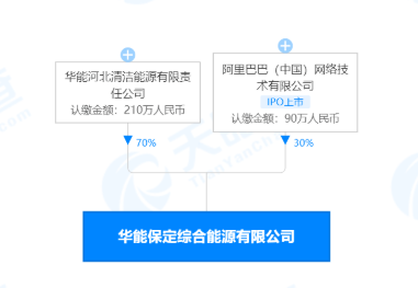 11月22日,华能保定综合能源有限公司注册成立,该公司由华能国际的全资子公司华能河北清洁能源有限责任公司、阿里巴巴(中国)网络技术有限公司共同持股,两家公司分别持股70%、30%。