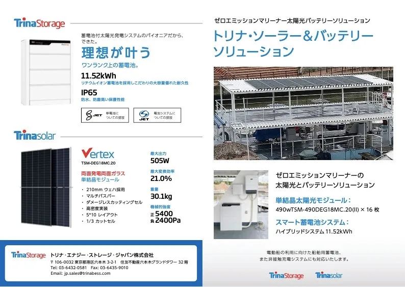 2020年7月,天合分布式家储电池通过苛刻验证测试、获得日本最权威机构JET认证证书,成为首家荣获JET认证、登录日本政府补贴目录的中国品牌家储电池。2022年4月,天合分布式商用储能电池系统再度荣获JET认证,继续引领中国品牌开拓日本分布式储能市场。