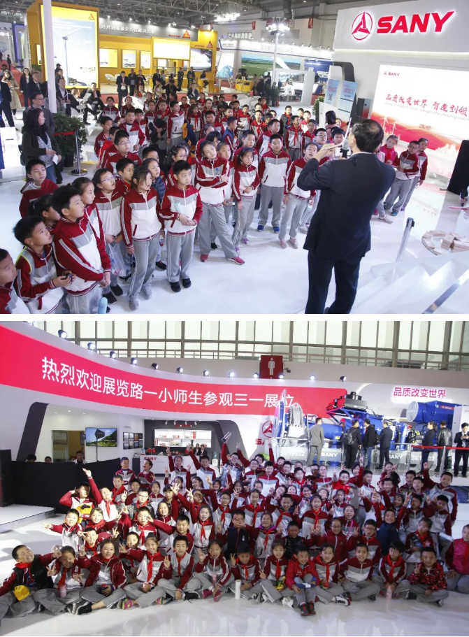 如果说提供平价解决方案,主要着眼于为业主在经济效益和生态效益方面持续创造价值,是在发挥行业领导者的作用。那么,在风能展上的多场公益活动,邀请学生团体到展台参观,则表明三一在传播绿色发展理念,创造风电的社会效益方面,同样也肩负着行业引领者的担当。