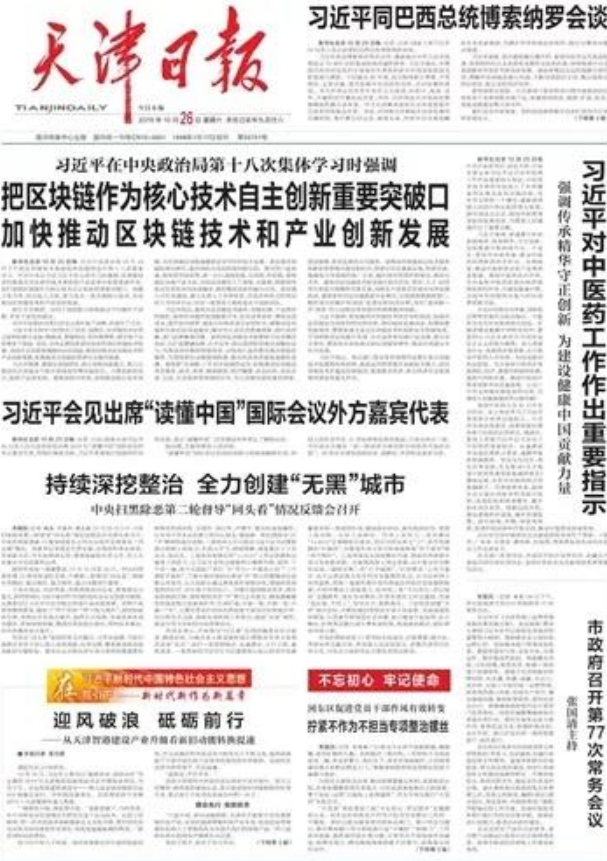 10月26日出版的《天津日报》头版刊发文章《迎风破浪 砥砺前行──从天津智港建设产业升级看新旧动能转换提速》,报道集团公司党委副书记、总经理,中环股份董事长、总经理沈浩平荣膺2019十大新能源年度人物奖。文中指出,沈浩平带领的中环股份是天津在产业升级中,坚守工匠精神,始终保持谦虚心态,努力促成新旧动能转换的优秀代表。