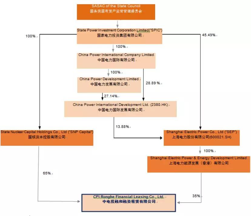 融和租赁直接控股股东为国家电投集团资本控股有限公司,持股比例为65%;第二大股东为上海电力能源发展(香港)有限公司,持股比例为35%;间接控股股东为国家电投集团。是国家电投下属仅有的两家(富康国际租赁、融和租赁)拥有租赁资质的金融平台之一。