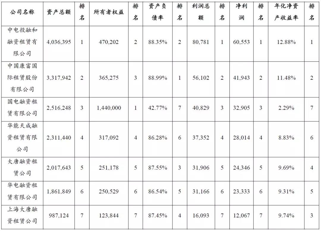 2017年度,融和租赁的表内外资产总额、利润总额、净利润、净资产收益率在五大发电集团7家租赁公司中均排名第一,在电力行业租赁项目中处于行业领先地位,在五大电力集团的融资租赁公司中属于领军企业。