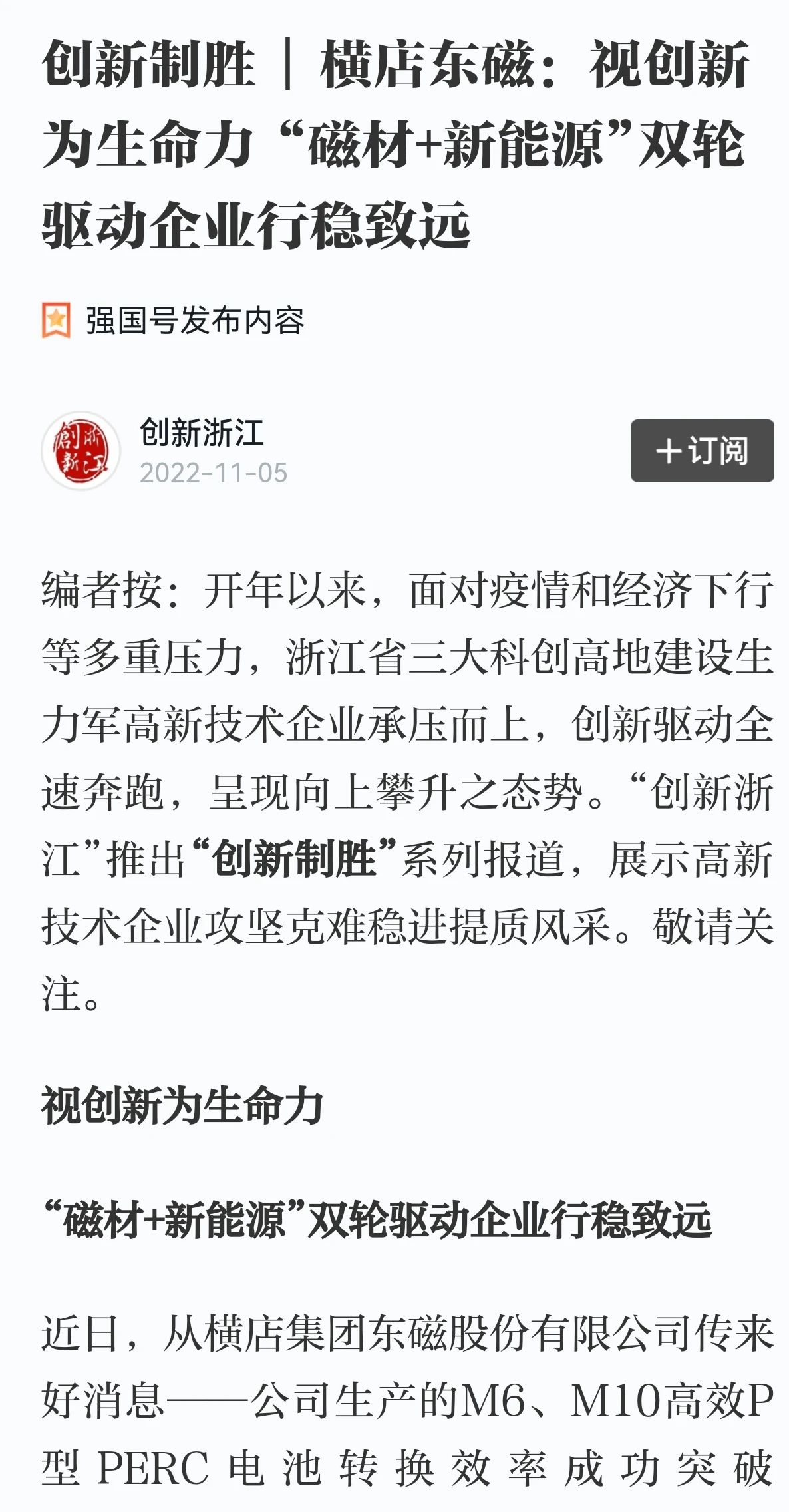 建设“未来工厂”,壮大未来产业,近期,横店东磁发展的“好声音”“正能量”得到了《央视新闻》、“学习强国”平台的关注。