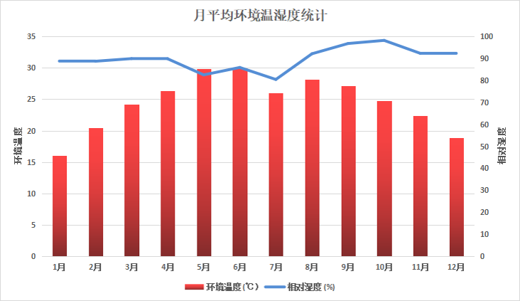 湿热气候环境 ,年均气温24℃ ,平均相对湿度在90%以上,年均日照1880小时,年平均峰值太阳小时数(PSH)大约为1600小时;