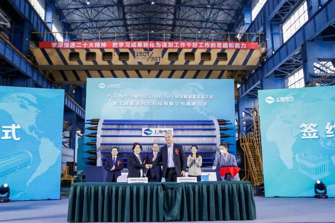 12月8日,上海电气制氢装备下线暨上海氢器时代科技有限公司(以下简称“氢器时代公司”)揭牌仪式在沪举行。市国资委党委书记、主任白廷辉,闵行区委副书记、区长陈华文出席,上海电气集团党委书记、董事长冷伟青为活动致辞。