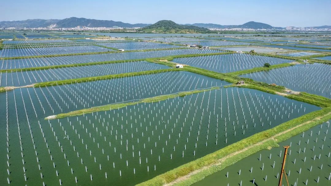 数月后,在汕头渔业养殖区内将见到一片片巨幅的光伏蓝,与鱼塘水面交相辉映,形成一道“渔舟唱绿电”的别样风景。
