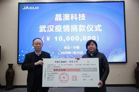 董事长靳保芳代表晶澳向武汉捐款