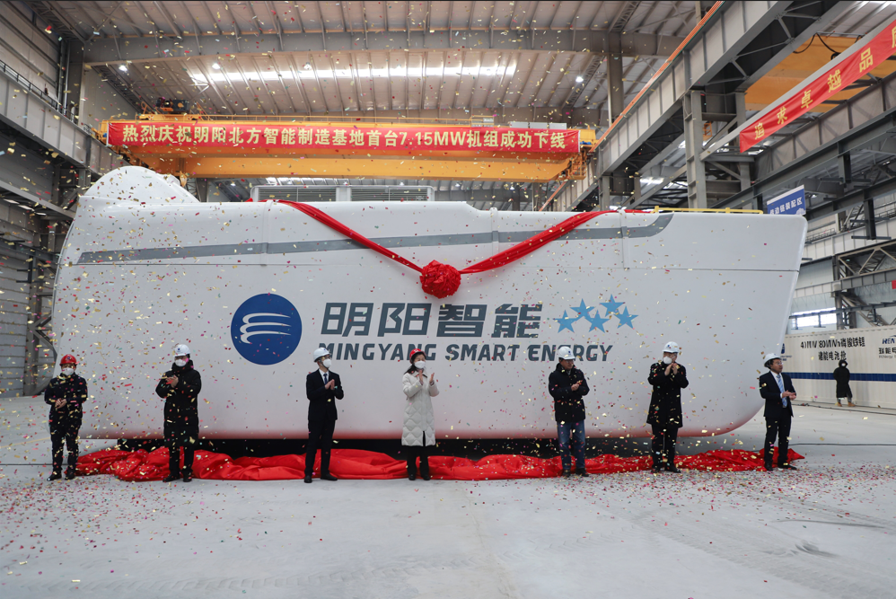 12月29日,由明阳智能自主研制的MySE7.15-216陆上超大型风电整机在包头市明阳新能源智能制造产业园成功下线,这是目前全球范围内已下线叶轮直径最大的陆上风电机组。