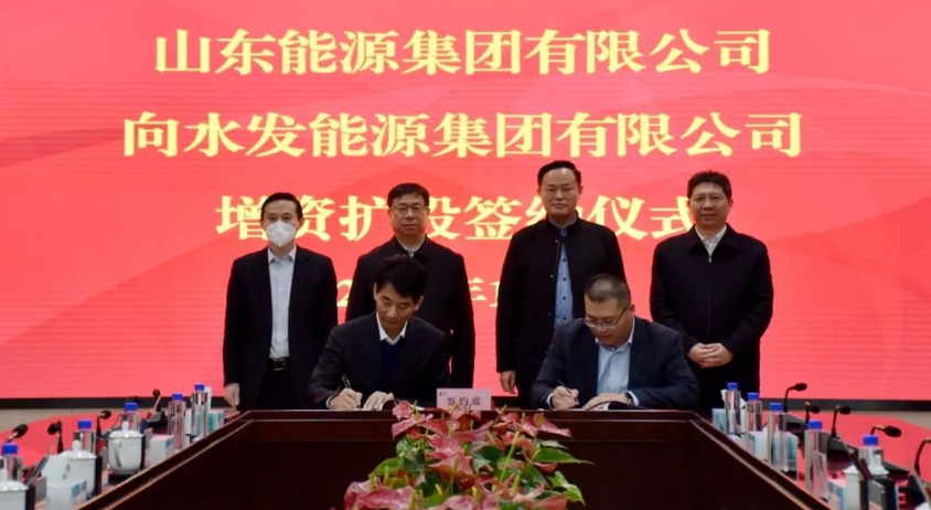根据协议约定,双方将通过增资扩股,进一步深化战略合作,共同拓展新能源市场。水发集团新能源业务涵盖风电、光伏、储能、水电、天然气综合利用等领域,资产总额超过600亿元,装机规模达到8GW,拥有水发兴业能源、水发燃气两家上市公司。水发能源集团是水发集团新能源业务的旗舰公司,进入五大地方新能源企业榜单,新能源项目投产2.1GW、在建1.2GW、签约14GW,在光伏、风电、储能等领域开发经验丰富,建设了日喀则50MW“光伏+储能”示范项目、“吉电入鲁”通榆县500MW风电场项目等优质项目,参与30多个县的整县分布式光伏开发。山东能源集团积极落实国家建设新型能源体系要求,整合旗下电力板块成立山东能源电力集团,搭建形成省级新能源投资平台,全面推动传统能源与新能源协同发展,大力发展海陆风电、光伏、储能、地热、氢能、生物质能等新能源,推动风光储氢、源网荷储一体化发展,致力打造国内领先的一流电力能源供应商。今年11月,山东能源渤中海上风电首批机组顺利实现并网发电,成为我国“十四五”规划建设五大海上风电基地的首个并网发电项目,创造了当年规划、当年核准、当年开工建设、当年并网发电的海上风电建设奇迹,刷新了全球海上风电推进最快速度。此次增资扩股,将推动双方更好发挥各自优势,在新能源产业投资、项目开发、技术创新、企业管理、人才培养等方面持续深化合作,赋能传统能源与新能源协同发展,加快建设山东新能源产业体系。