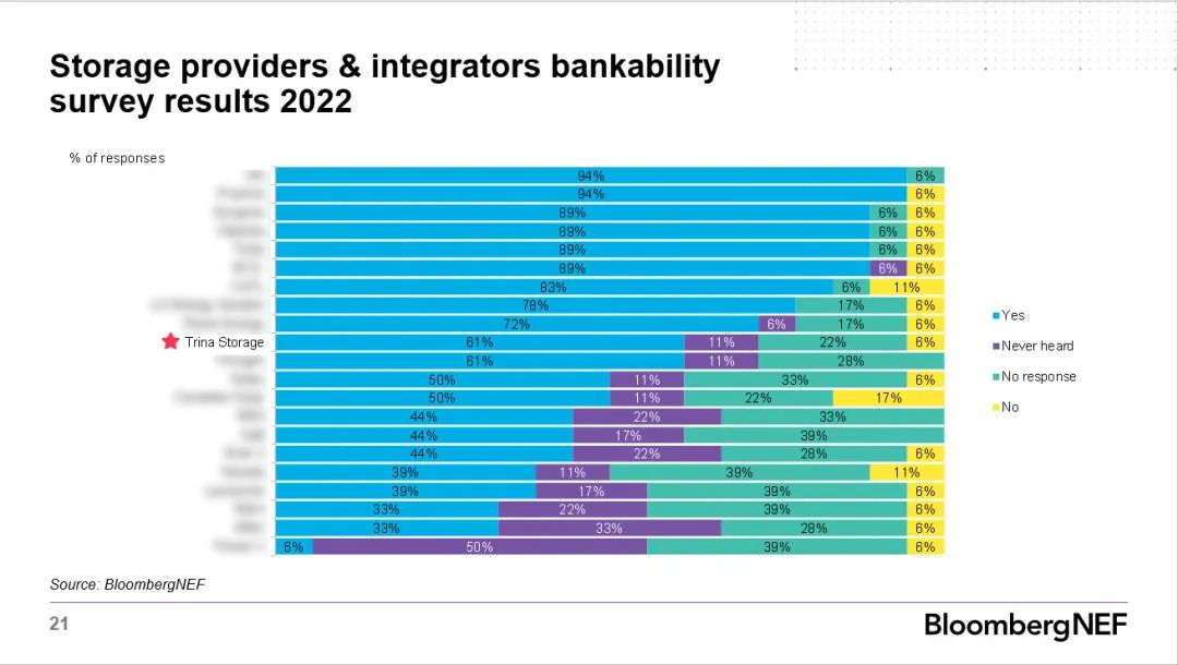▲ BNEF 2022年全球储能产品及系统集成商可融资性评级
