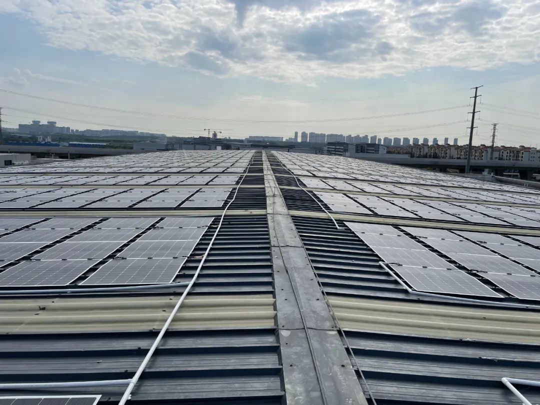 随着一辆辆配送车的陆续发动,清晨的阳光慢慢洒落,市场屋顶上由国家电投海南分公司投建的一期3.5MW分布式光伏电站也开始了一天的工作。该屋顶使用上迈eArc轻质组件,成功解决了轻质彩钢瓦屋顶承载能力不足的问题。