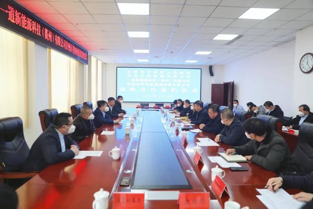 2023年1月10日,一道新能携手张掖市甘州区人民政府、华电甘肃能源有限公司、张掖市河西新能源投资有限公司签署5GW光伏组件生产基地战略合作协议。张掖市委常委、区委书记葛永宏,区委副书记、区长赵新福,华电甘肃能源有限公司规划发展部项目筹备处主任杨轩,一道新能董事长特别助理王春华,张掖市河西新能源投资有限公司总经理杨涛等相关领导出席签约仪式。