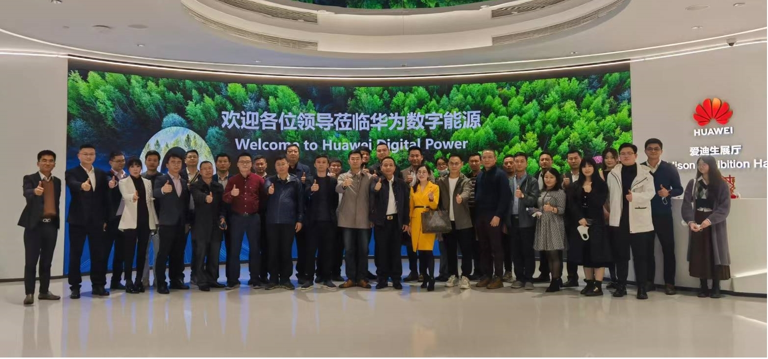 华为深圳数字能源总经理申世炜、广东智能光伏渠道总监熊烈带领各位伙伴参观华为数字能源爱迪生展厅,讲解华为数字能源各业务场景的产品和解决方案核心价值,传递华为数字能源在双碳领域的理念和技术。