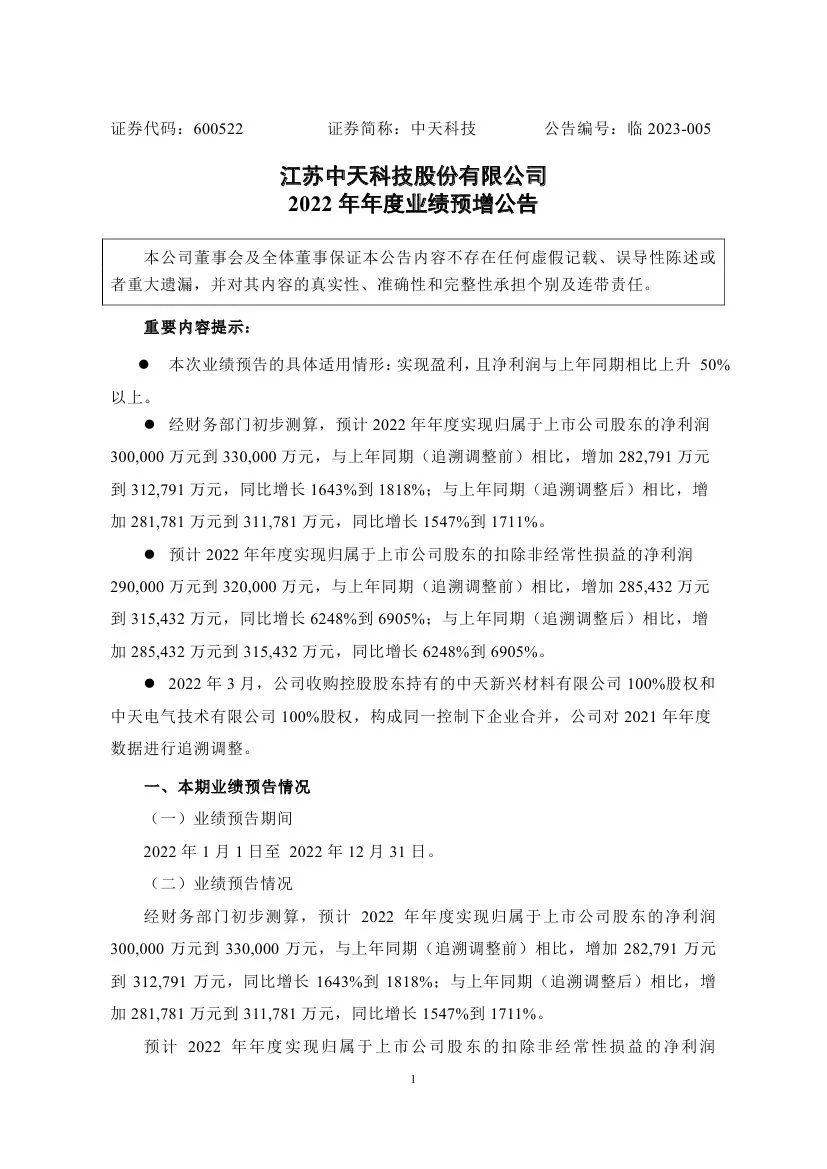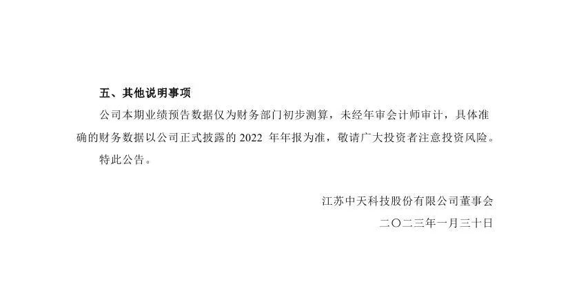 归母净利润30-33亿元!中天科技预计2022全年净利同比增长1643%到1818%!