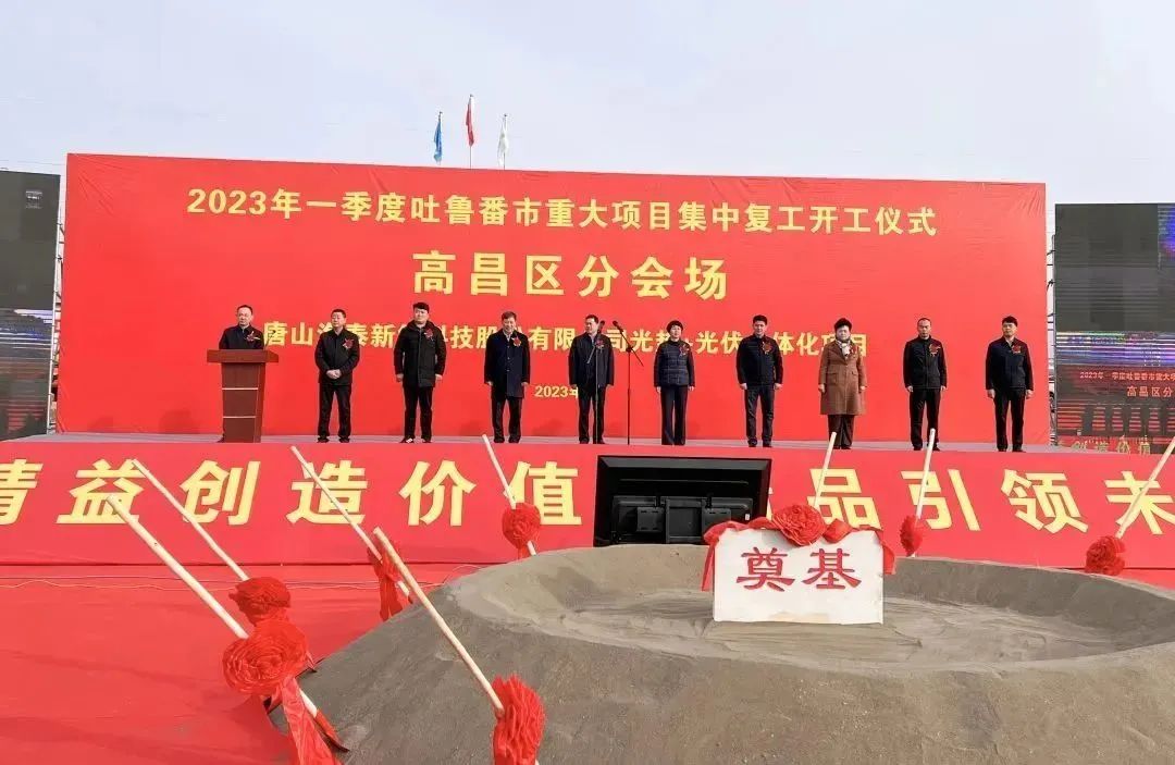 新疆吐鲁番市2023年第一季度重大项目集中开复工仪式,于2月10日上午在吐鲁番市高昌区分会场(七泉湖光伏园区海泰新能光伏+光热一体化项目)顺利举行,由高昌区委、区政府主办,唐山海泰新能科技股份有限公司、中国能源建设集团西北电力建设工程公司承办。