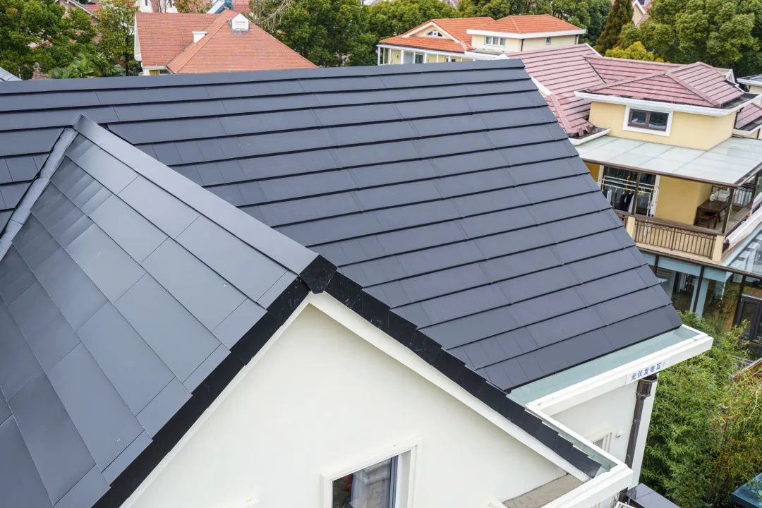 别墅屋面应用旭日系列坡屋面整体解决方案,高效发电同时保证建筑结构安全、电气安全,赋能建筑风格,专为建筑设计而生。
