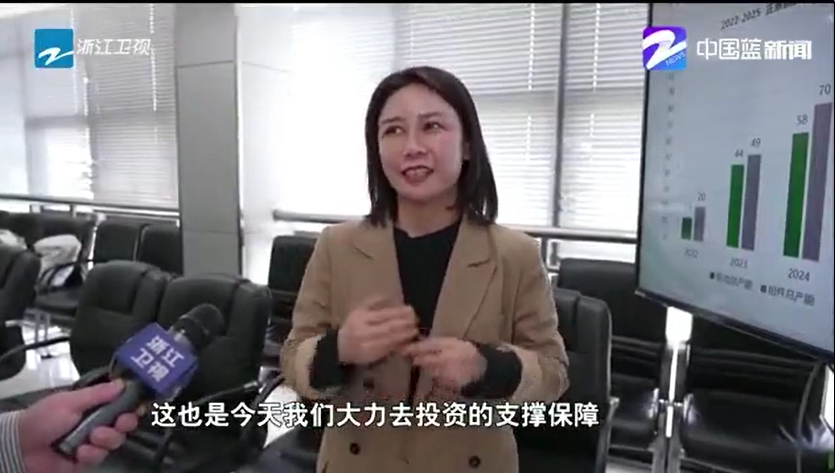 2月22日,正泰新能作为先进制造企业代表亮相浙江卫视《浙江新闻联播》栏目,正泰新能常务副总裁、首席可持续发展官黄海燕接受记者采访,讲述正泰新能发展规划。