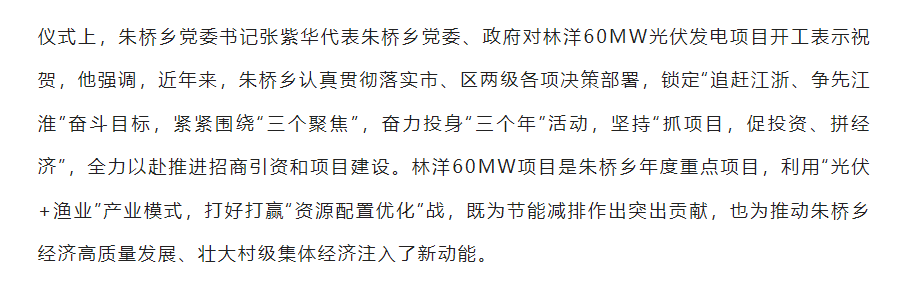 赋能乡村振兴!林洋安徽宣城宣州朱桥乡60MW光伏发电项目正式开工
