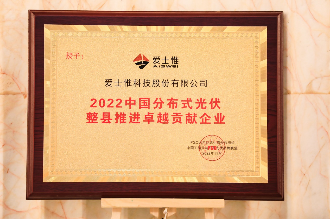 (爱士惟获颁“2022中国分布式光伏整县推进卓越贡献奖”)