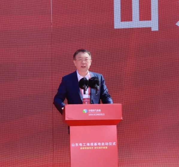 赵永志在致辞中向长期以来关心支持企业发展的威海市委市政府、经开区委区政府和社会各界表示衷心的感谢。他表示,山东电工海缆基地项目是深入学习贯彻习近平总书记关于装备制造业重要指示精神,落实制造强国战略、助力“双碳”目标达成的重要举措和生动实践,标志着企业改革发展迈出了历史性一步,必将开启山东电工发展的新篇章,为企业抢占产业制高点注入强劲的动能,为做大做优做强奠定了坚实基础。山东电工将以海缆基地建设为契机,胸怀“国之大者”,对标世界一流,突出改革创新主基调,持续深化强化固化,积极谋局布局开局,增强志气骨气底气,不断推动科技自立自强,全力支撑海上风电行业发展,努力实现股东权益最大化,全面打造政府满意、客户信赖、行业尊重、员工自豪、文化先进的“大国重器”。