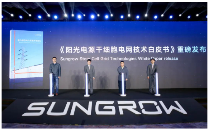 在全场嘉宾见证下,阳光电源重磅发布《阳光电源干细胞电网技术白皮书》,创新推出干细胞电网技术Stem Cell Tech,将应用于能源基地、柔性输电、孤岛供电、终端用能等场景中,全面助力新型电力系统稳定运行。