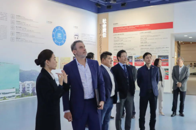 在正泰创新体验中心,代表团一行详细了解了正泰发展历程、全球业务布局和智慧工业、智慧新能源等情况。正泰深入践行“产业化、科技化、国际化、数字化、平台化”战略举措,形成了“绿色能源、智能电气、智慧低碳”三大板块和“正泰国际、科创孵化”两大平台,业务遍及140多个国家和地区。