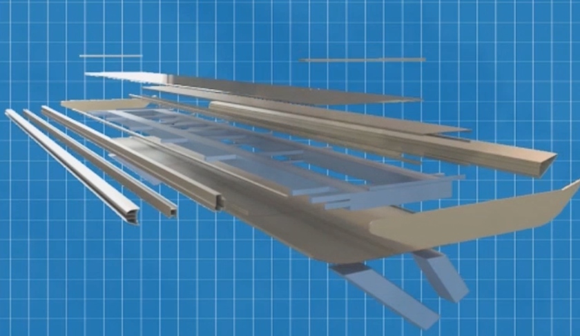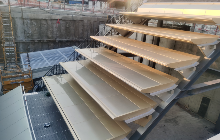 单元板块内部主龙骨选用氟碳喷涂钢方管,外饰面板有铝单板、光伏玻璃系统等,将龙骨与幕墙材料组成超大单元板块,最终实现单元体的装配式安装,实现了光伏建筑一体化,让建筑自己发电,助力打造一座绿色、低碳的现代化场馆。