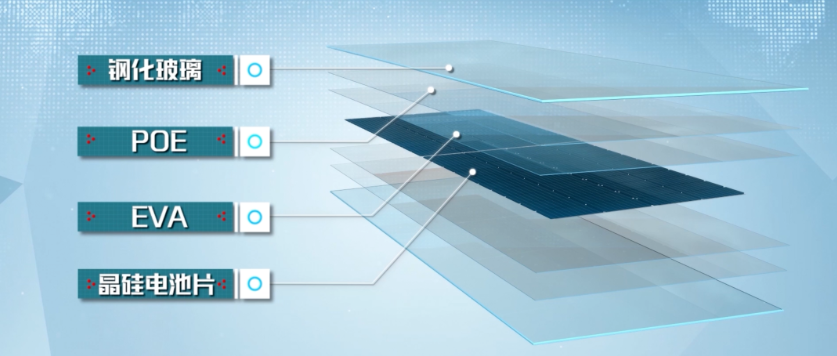 该系统由不同尺寸的超大异形幕墙板块组成,标准厚度光伏组件无法满足超大异形板块的结构性能。为应对这一问题,团队创新设计了6mm厚的双玻定制光伏组件,并采用POE+EVA组合胶膜,使定制异形光伏组件具有低水汽透过率、高运行安全性、长久耐老化性等优势,实现了超大板块单元体的结构性能和建筑的个性化需求。