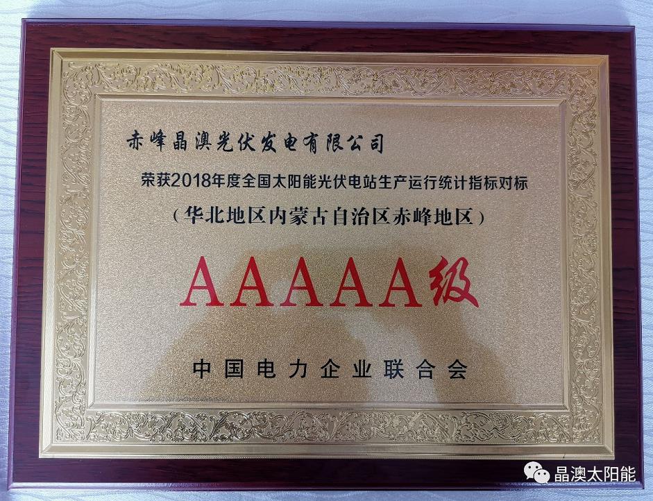 10月16日,由中国电力企业联合会科技开发服务中心、全国发电机组技术协作会发布2018 年度全国太阳能光伏电站生产运行指标对标榜单,赤峰晶澳光伏发电有限公司通过综合评比列入“AAAAA”级。