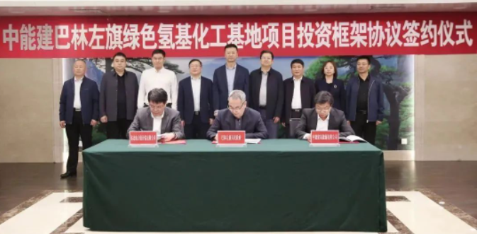 4月25日,中能建氢能源有限公司(简称“能建氢能”)与巴林左旗人民政府及东北电力设计院有限公司就中能建巴林左旗绿色氢基化工基地示范项目签署《绿色氢基化工基地项目投资框架协议》。