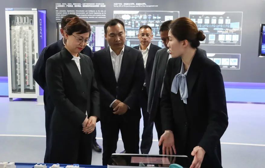 签约前,刘伟红一行参观正泰创新体验中心,考察企业在绿色能源领域的探索实践,深入了解正泰在智慧新能源及智能制造、智慧工业、智慧城市等方面的新技术、新成果和新业态。