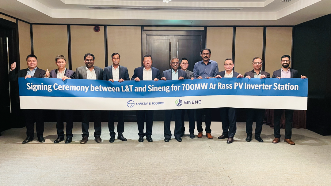 近日,上能电气与Larsen & Toubro(以下简称L&T)签署沙特700 MW Ar Rass光伏项目逆变设备供货协议,该项目是迄今为止作为沙特阿拉伯国家可再生能源计划(NREP)进行招标的最大光伏项目之一,也是上能电气持续深耕中东市场的又一重大成绩。全面投运后将为沙特阿拉伯中部地区约13.2万户家庭提供绿色电能,助力中东加速能源低碳转型和“2030愿景”实现。