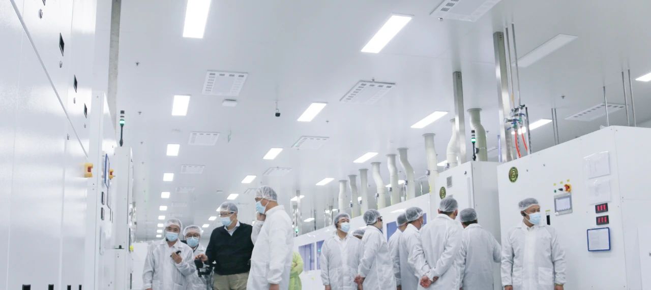 瞿晓铧一行首先深入金刚光伏异质结电池智能生产车间,通过实地调研考察参观对金刚光伏异质结电池生产工艺流程、转化效率、产线产能等情况进行了详细了解,并对金刚光伏先进的科研技术、资深团队实力、以及极具行业前瞻性指引的210半片微晶异质结电池产品表示高度认可。