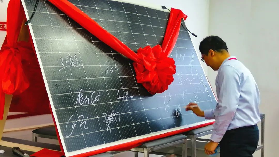 轻质组件新生产线以及新品520组件的顺利投产,背后凝结着每个上迈队伍的汗水与团结,仪式开始,在场的上迈员工在520组件上郑重地签署了自己的姓名。这些签名承载着每个员工对客户的一份责任、对公司发展的一份使命、以及作为激励自我的一份决心。