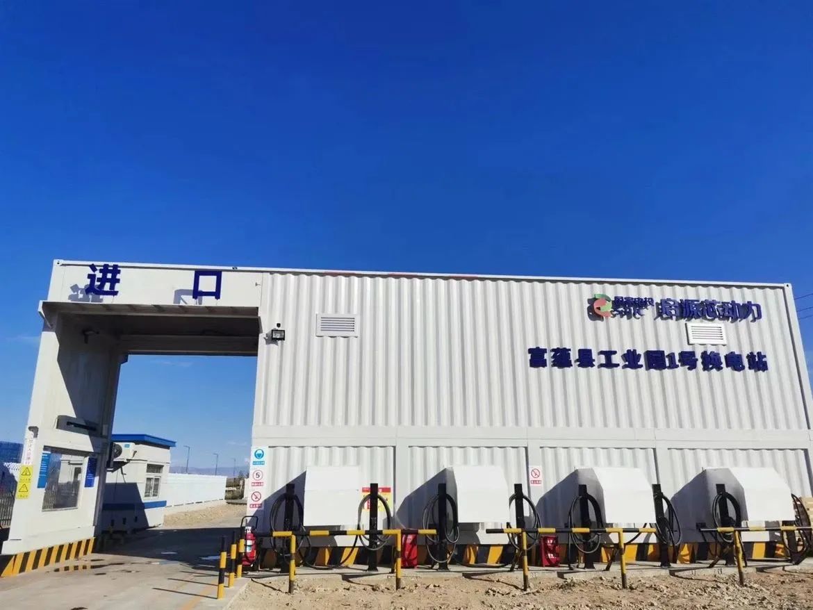一年时间里,启源芯动力联合富蕴县战略合作的“源网荷储+绿电交通”首期项目已建设完成。三座充换电站在富蕴县拔地而起,围绕矿区、工业园、铁路货运站形成运输通道。