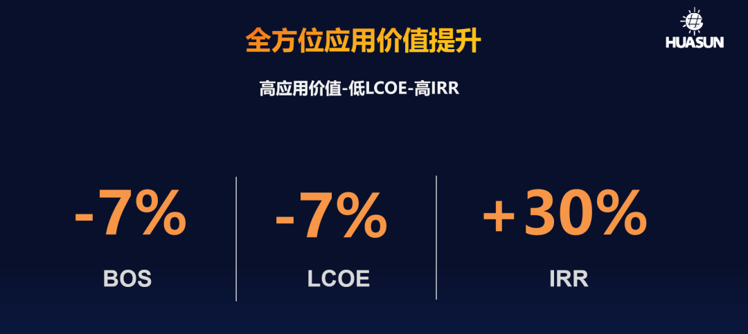 根据模拟测算,功率720W的V-ocean海光组件分别可带来7%的BOS成本节省、6%的发电量提升与7%的度电成本降低,总体实现30%的IRR提升。