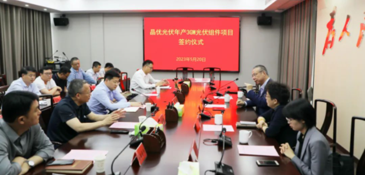 5月20日,晶优光伏集团再添一座新基地,年产3GW光伏组件项目签约仪式顺利举行,这是晶优光伏集团第六个制造基地,于今日正式落地安徽省安庆市岳西县。