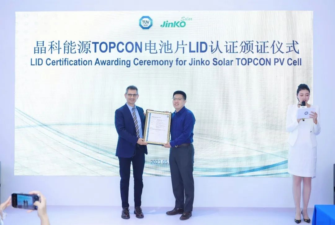 5月24日,TÜV南德授予晶科能源股份有限公司(以下简称“晶科能源”)TOPCON电池片产品基于技术规范标准IEC 63202-1:2019的首张TÜV南德电池片LID认证证书,创光伏行业电池认证的先例。