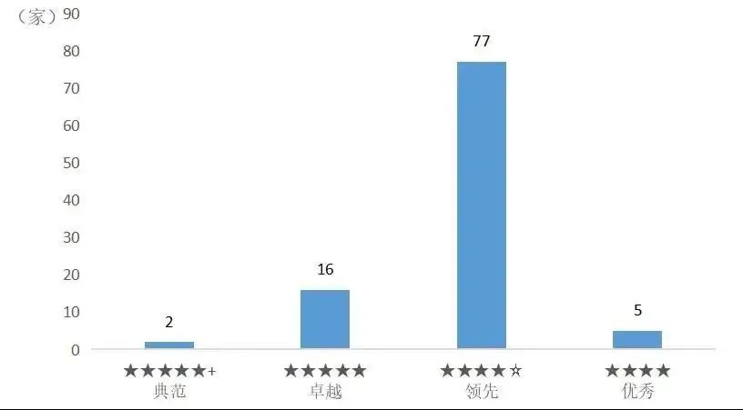 “先锋100”企业中,2家公司处于五星佳级水平,是上市公司ESG发展的典范者;16家处于五星级水平,是上市公司ESG发展的卓越者;77家处于四星半级水平,是上市公司ESG发展的领先者;5家处于四星级水平,具有优秀的ESG整体表现。