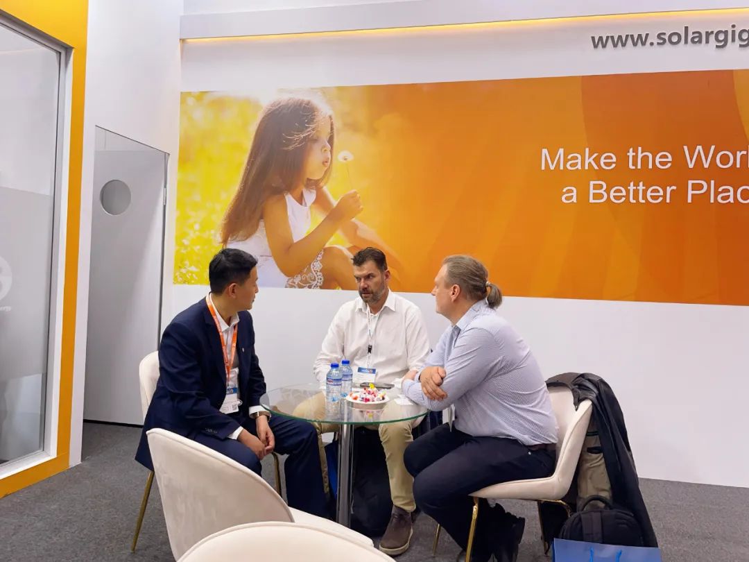 本届德国展,阳光能源展出了我司的“明星产品”——GIGA系列组件,其卓越的性能和高效的转换效率,深受客户好评。现场,阳光能源工作人员还与来自世界各地的业内人士展开了深度交流与业务洽谈。