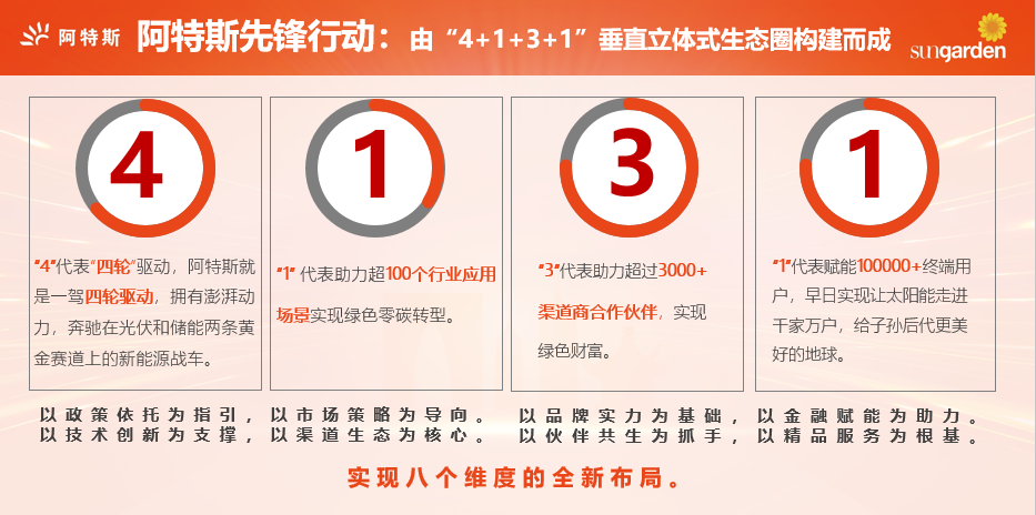 阿特斯先锋行动以阿特斯的品牌和研发实力为基础,深化链接品牌、市场、渠道、用户等多方,高效整合和配置创新资源,实现垂直立体式合作模式,破局行业痛点,引领合作模式升级!