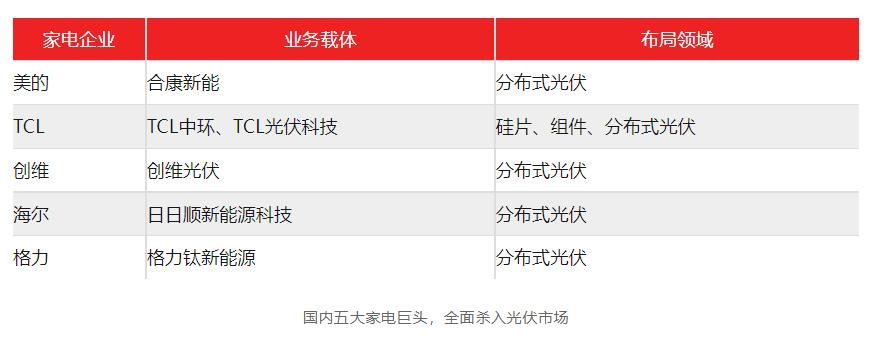 在过去两年里,家电巨头把触手伸向光伏成为了一种趋势。尤其是以美的、TCL、创维、海尔以及格力为代表的“家电五虎”,“含光伏量”肉眼可见的提高。