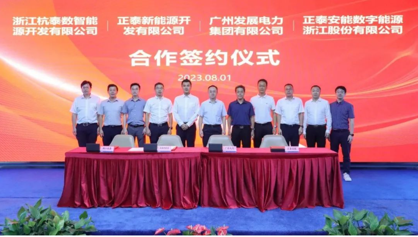 8月1日下午,广州发展电力集团有限公司、浙江正泰新能源开发有限公司、正泰安能数字能源(浙江)股份有限公司、浙江杭泰数智能源开发有限公司在杭就深化新能源领域合作举行签约仪式。广州发展集团党委委员、副总经理王铁军,广州发展电力集团党委书记、董事长毛庆汉,正泰新能源董事长、总裁陆川,正泰新能源董事、正泰智维总经理金建波,正泰新能源总裁助理、电站板块总经理黄启银等出席。