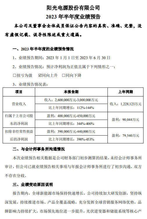 业绩骄人!阳光电源上半年净利预增344%-400%!