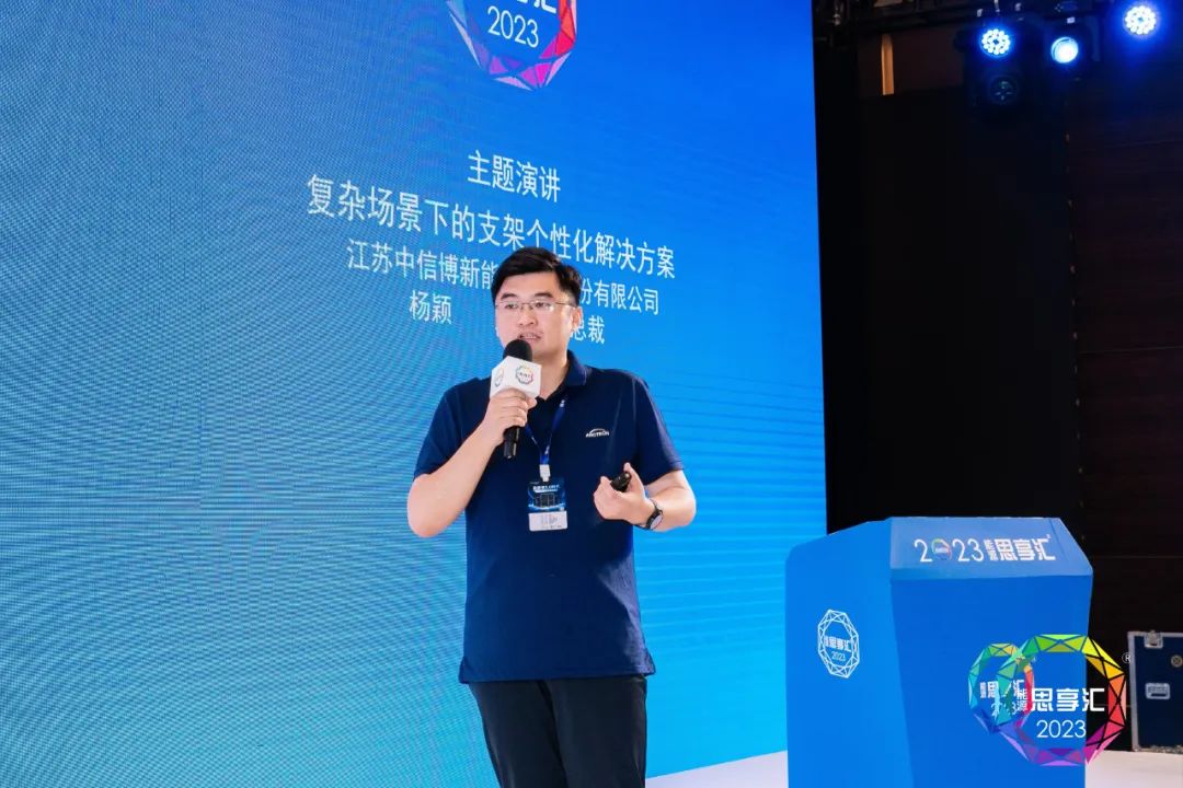 杨颖在8月14日的会议中,发表了“复杂场景下的支架个性化解决方案”主题演讲,详细介绍了中信博是如何通过产品技术和解决方案的创新,真正实现客户价值最大化,引领行业高质量发展。