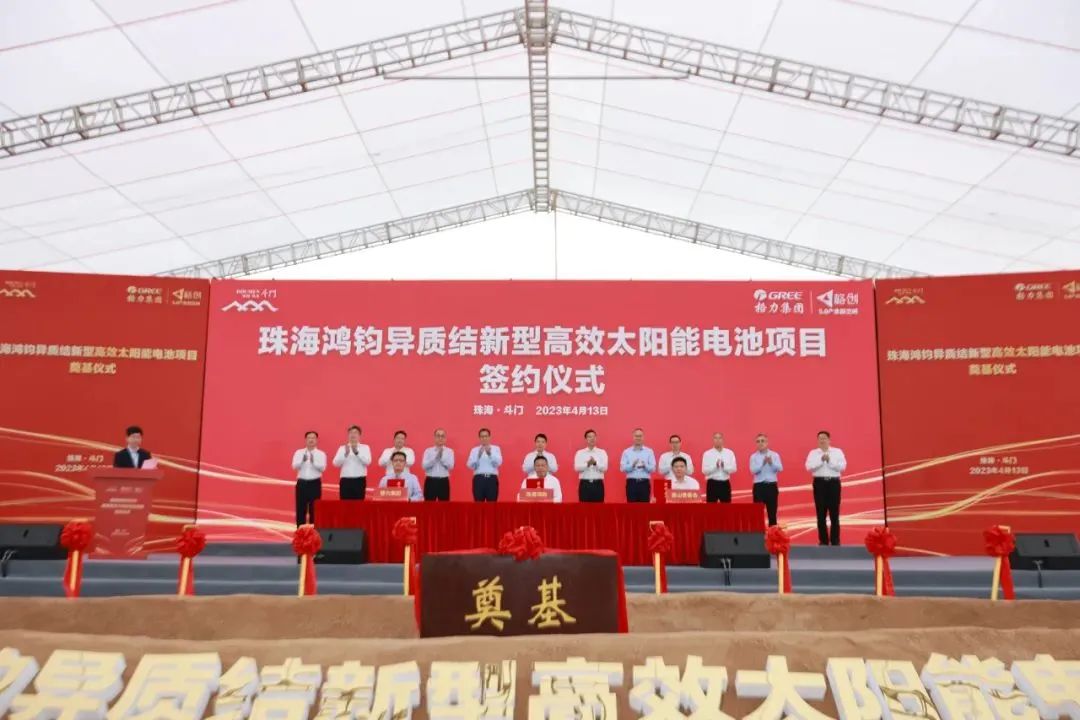 据此前格力集团官微消息,4月13日上午,珠海鸿钧异质结新型高效太阳能电池项目在斗门区富山工业城举行奠基仪式。根据规划,鸿钧异质结项目一期将于2023年底完成竣工验收。